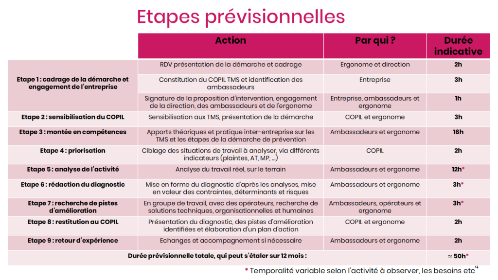 - Être prêt à s’investir dans une démarche de prévention des TMS et les différentes étapes présentées plus haut.